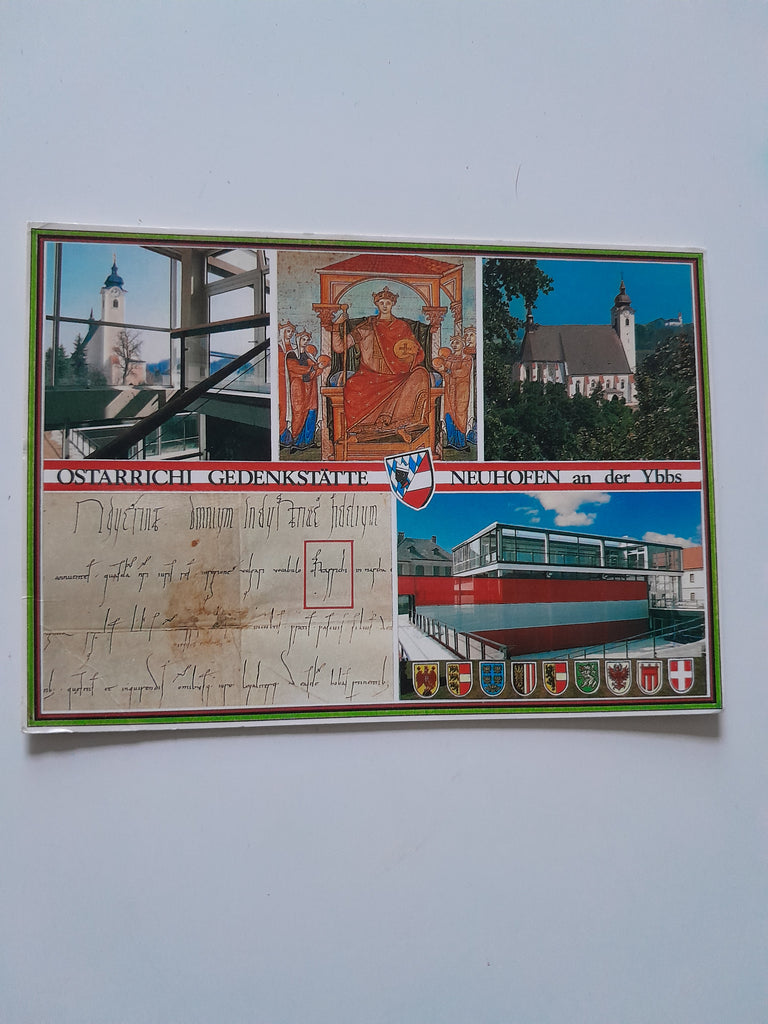AK Neuhofen an der Ybbs. Ostarrichi Gedenkstätte. Ungelaufen. Großformat. Verlag: Kellner. Nummeriert: 3364/6. Zustand: stärker bestoßen.