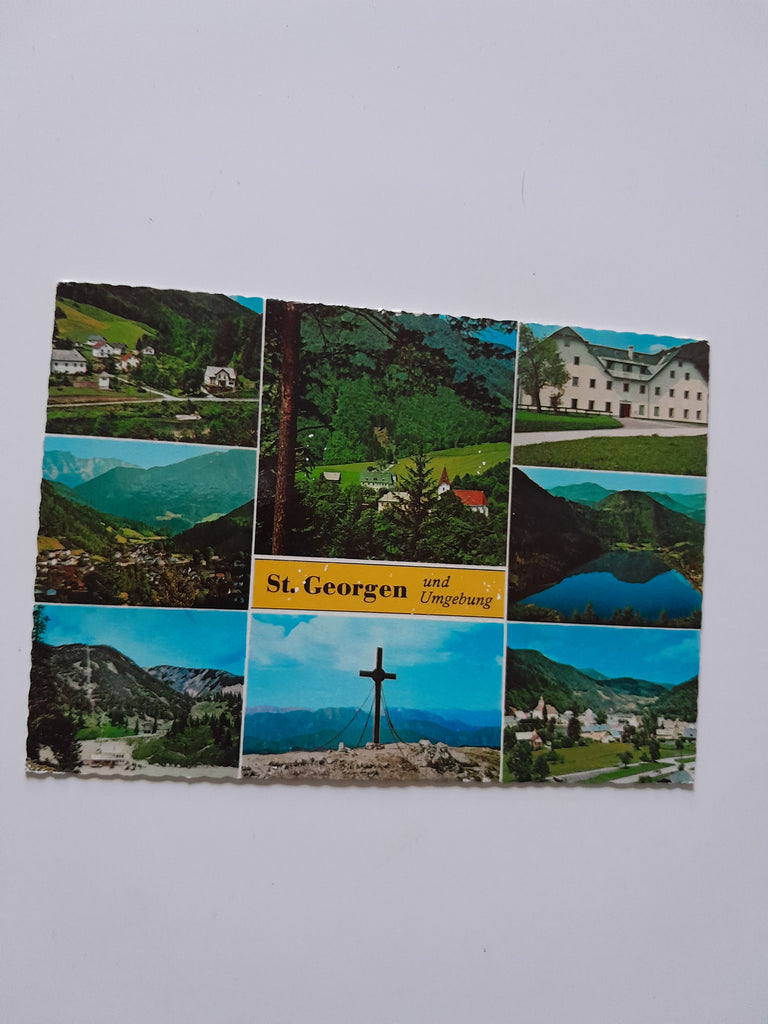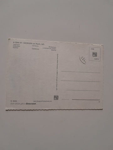 AK St. Georgen am Reith und Umgebung. Gelaufen, aber Briefmarke wurde entfernt. Großformat. Verlag: PAG. Nummeriert: 82444. Zustand: leicht brieben.
