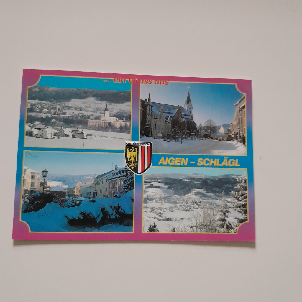 AK Aigen - Schlägl. Gelaufen. Großformat. Verlag: Alpine Luftbild. Nummeriert: 3884. Zustand: stark bestoßen.