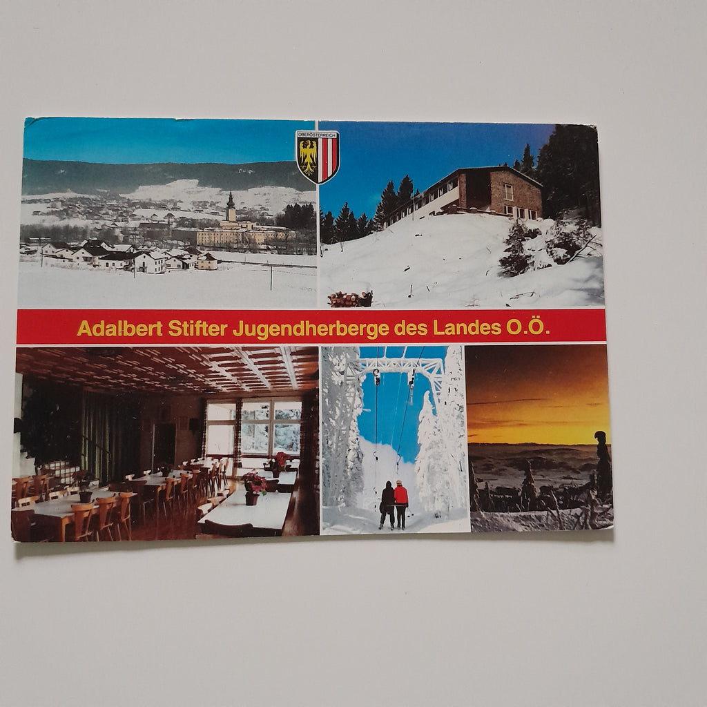AK Aigen im Mühlviertel. Adalbert Stifter Jugendherberge des Landes OÖ. Gelaufen. Großformat. Verlag: Alpine Luftbild. Nummeriert: 2080. Zustand: gut, leicht bestoßen.