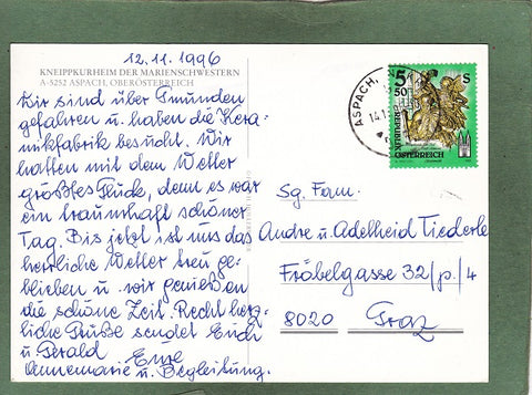 AK Aspach. Kneippkurheim der Marienschwestern. Gelaufen 1996. Großformat. Verlag: Foto Hollerweger. Zustand: gut, linkes oberes Eck geknickt.
