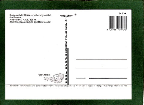 AK Bad Hall. Herz- und Kreislaufzentrum der Bauern. Ungelaufen. Großformat. Verlag: Alpine Luftbild Innsbruck. Nummeriert: 94630. Zustand: gut.