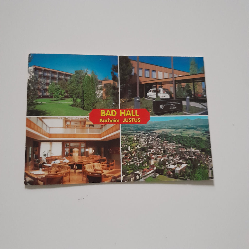 AK Bad Hall. Kurheim Justus. Gelaufen. Großformat. Verlag: Alpine Luftbild. Nummeriert: 3439. Zustand: linke Ecken geknickt.