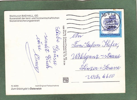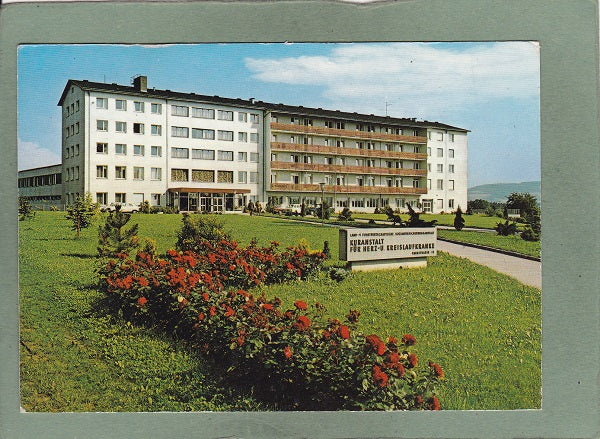 AK Bad Hall. Kuranstalt der land- und forstwirtschaftlichen Sozialversicherungsanstalt. Gelaufen 1982. Großformat. Verlag: Pietsch. Nummeriert: 82293. Zustand: Ecken angeknickt, kleiner Knick in linker unterer Bildhälfte.