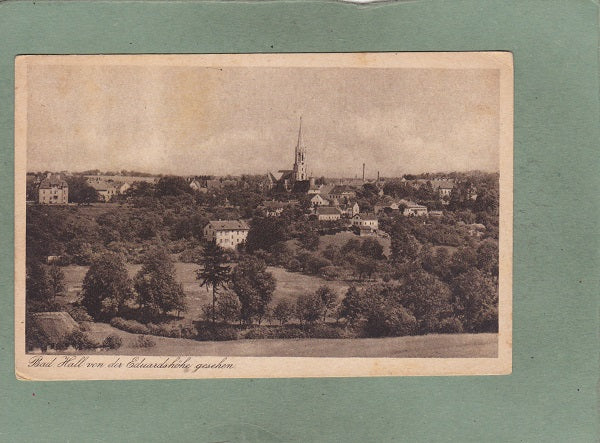 AK Bad Hall von der Eduardshöhe gesehen. Gelaufen, aber Briefmarke wurde entfernt. Kleinformat. Verlag: Pirngruber. Zustand: Ecken wenig angeknickt, vergilbt.