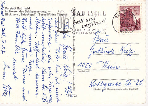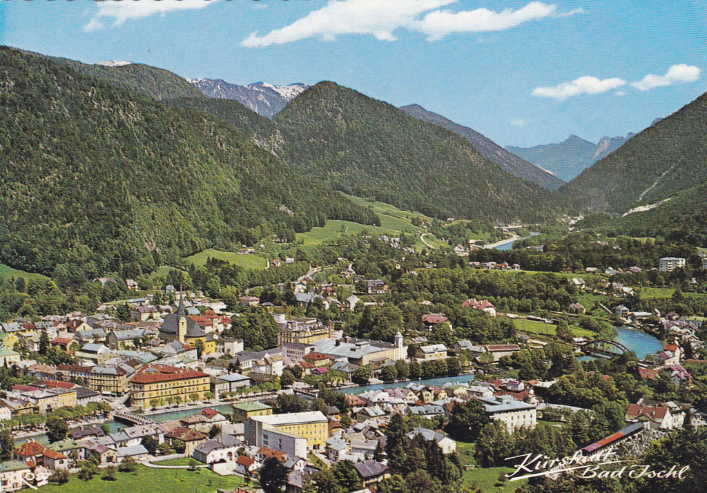 AK Bad Ischl. Blick vom Siriuskogel ins Trauntal. Gelaufen. Großformat. Verlag: Cosy. Nummeriert: FS 702. Zustand: gut.