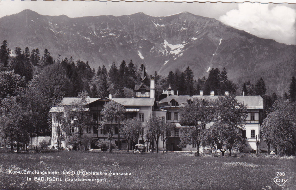 AK Bad Ischl. Kur- u. Erholungsheim der O.Ö. Gebietskrankenkassa. Gelaufen. Kleinformat. Verlag: Cosy. Nummeriert. 733. Zustand: gut, im linken oberen Eck leicht berieben.