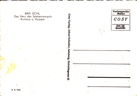 AK Bad Ischl. Kurhaus u. Kurpark. Ungelaufen. Großformat. Verlag: Cosy. Nummeriert: F S 703. Zustand: gut, leichte Läsuren.