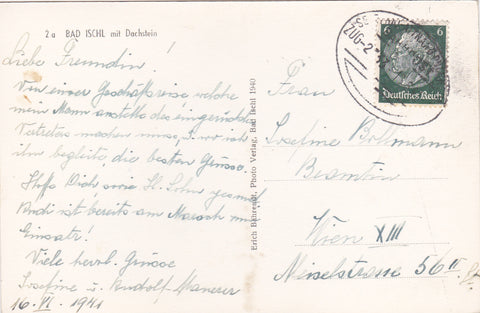 AK Bad Ischl mit Dachstein. (1940) Gelaufen. Kleinformat. Verlag: Bährendt. Nummeriert: 2a. Zustand: gut, leicht fleckig.