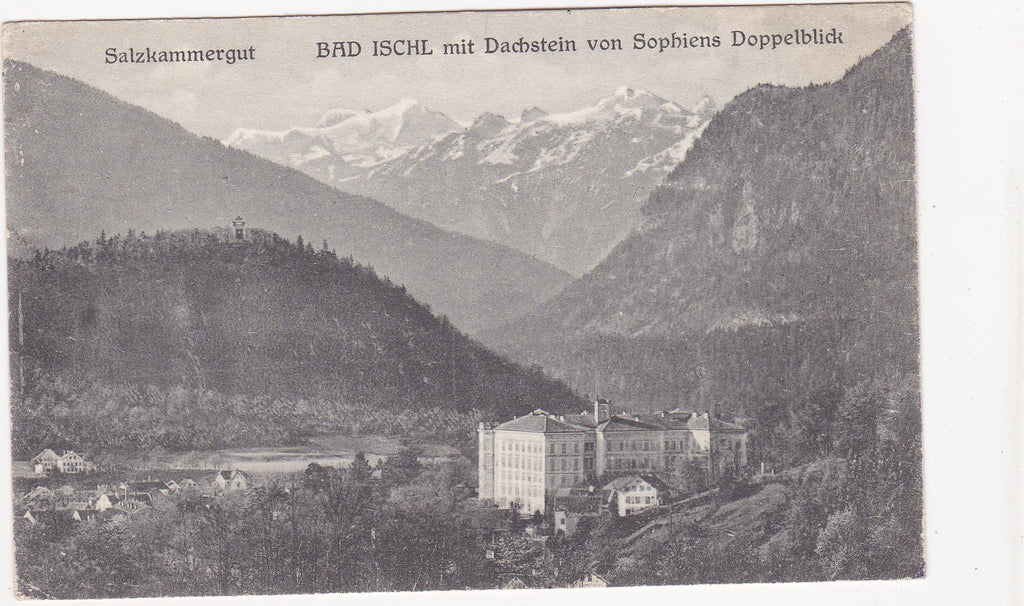 AK Bad Ischl mit Dachstein von Sophiens Doppelblick. (1920) Ungelaufen. Kleinformat. Verlag: Brandt. Nummeriert: 4777. Zustand: obere Ecken leicht geknickt, untere Ecken wenig angeknickt, sonst O.k.