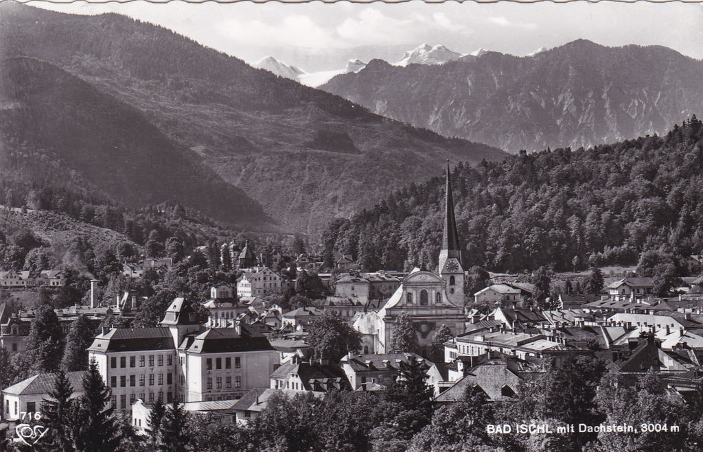 AK Bad Ischl mit Hohem Dachstein. Gelaufen. Kleinformat. Verlag: Cosy. Nummeriert: 716. Zustand: gut.