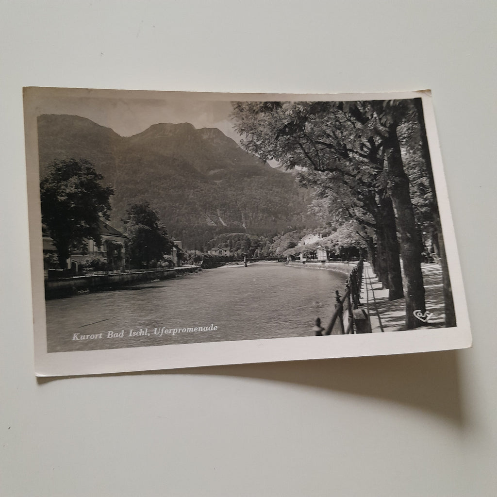 AK Bad Ischl. Uferpromenade. Gelaufen. Kleinformat. Verlag: Cosy. Nummeriert: 710. Zustand: gut.