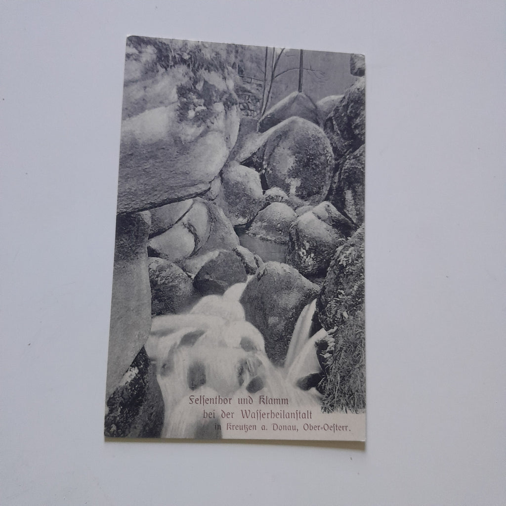 AK Felsenthor und Klamm bei der Wasserheilanstalt in Kreuzen an der Donau. Ungelaufen. Kleinformat. Zustand: gut.