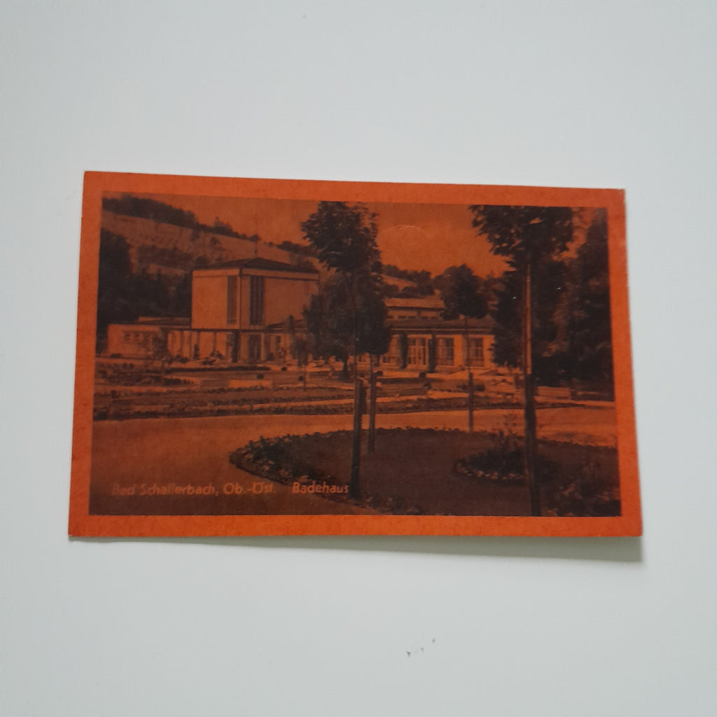 AK Bad Schallerbach. Badehaus. (1949) Gelaufen. Kleinformat. Verlag: Roitner. Nummeriert: 104. Zustand: rechtes oberes Eck geknickt.