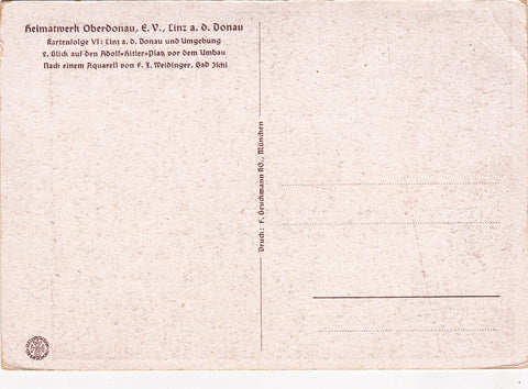 AK Blick auf den ... vor dem Umbau. Heimatwerk Oberdonau, E.V., Linz a.d. Donau. Kartenfolge VI: Linz a.d. Donau und Umgebung. Nummeriert: 2. Nach einem Aquarell von F.X. Weidlinger, Bad Ischl. Ungelaufen. Großformat. Verlag: Bruckmann. Zustand: rechtes oberes Eck mehrfach geknickt, linkes unteres Eck angeknickt.