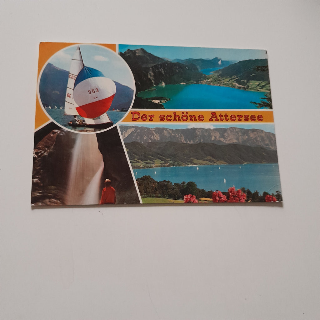 AK Der schöne Attersee. Gelaufen. Großformat. Verlag: Risch-Lau. Nummeriert: 11355. Zustand: leicht bestoßen.