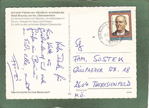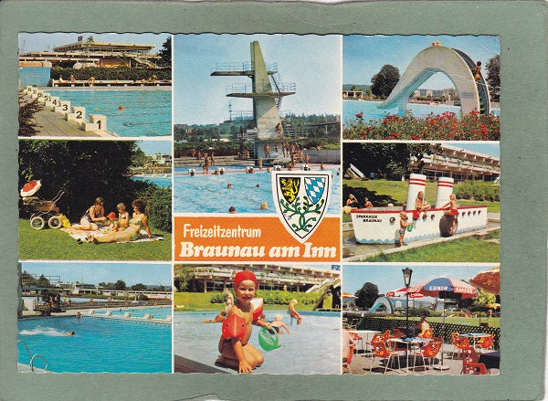 AK Braunau am Inn. Freizeitzentrum. Gelaufen 1991. Großformat. Verlag: König. Nummeriert: 100. Zustand: stärker bestoßen, Einriss am rechten Rand.
