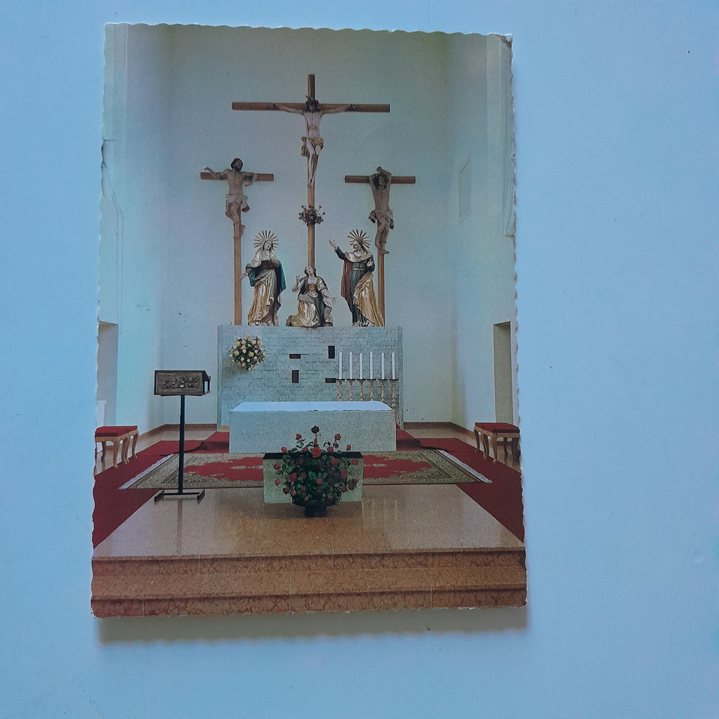AK Braunau am Inn. Kapuzinerkirche. Kreuzigungsgruppe und Altar. Gelaufen. Großformat. Verlag: König. Nummeriert: 122. Zustand: gut, wenig bestoßen.