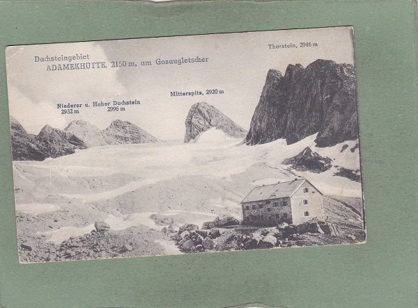 AK Dachsteingebiet. Adamekhütte am Gosaugletscher. Ungelaufen. Kleinformat. Verlag: Brandt. 1912. Nummeriert: 4946. Zustand: linkes oberes und rechtes unteres Eck geknickt, sonst O.K.