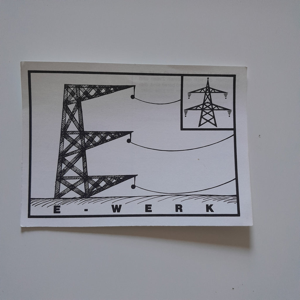 AK E-Werk. Verein Museum Arbeitswelt. Cartoon & Grafik: Hermann Haslinger, Linz.