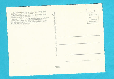 AK Das Salzkammergut. Ungelaufen. Großformat. Verlag: Cosy. Nummeriert: FS 51a. Zustand: gut, leichte Läsuren.