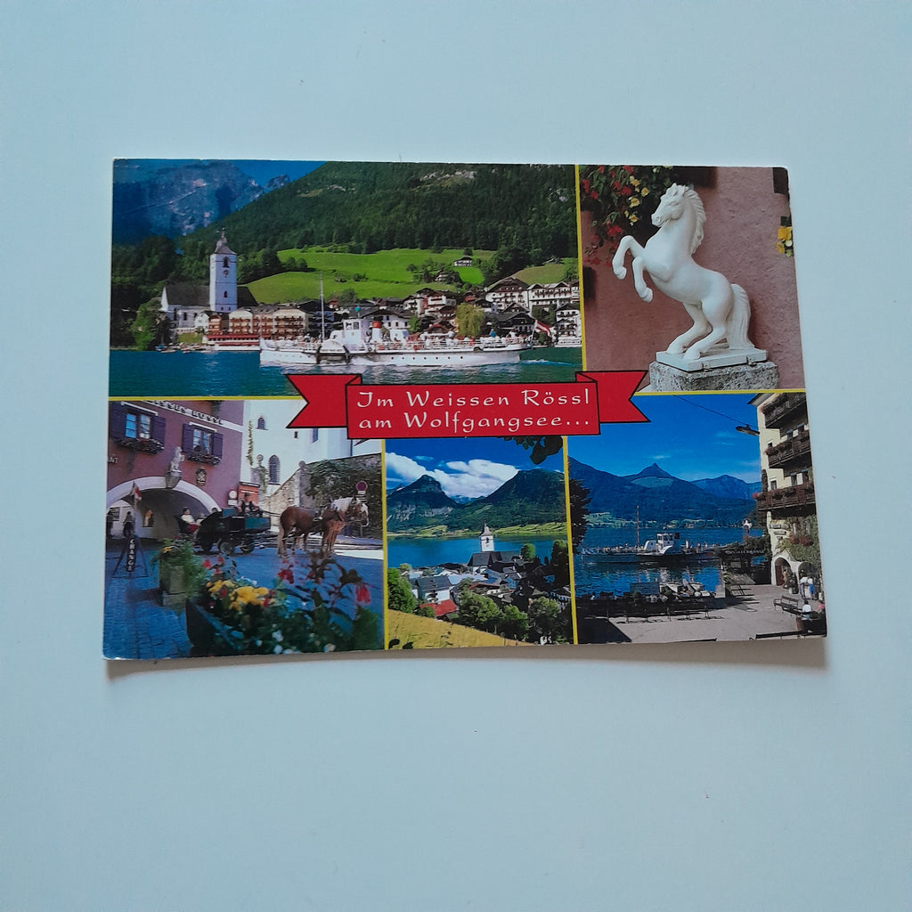 AK Im Weissen Rössl am Wolfgangsee. Gelaufen. Großformat. Verlag: St. Wolfganger Kunstverlag. Nummeriert: 375. Zustand: linkes oberes Eck und am linken Rand geknickt.