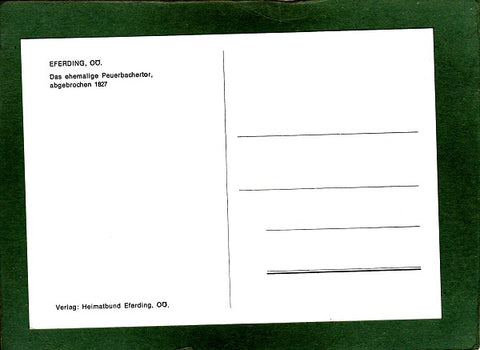 AK Eferding. Das ehemalige Peuerbachertor, abgebrochen 1827. Ungelaufen. Großformat. Verlag: Heimatbund Eferding. Zustand: gut, linkes unteres Eck geknickt.