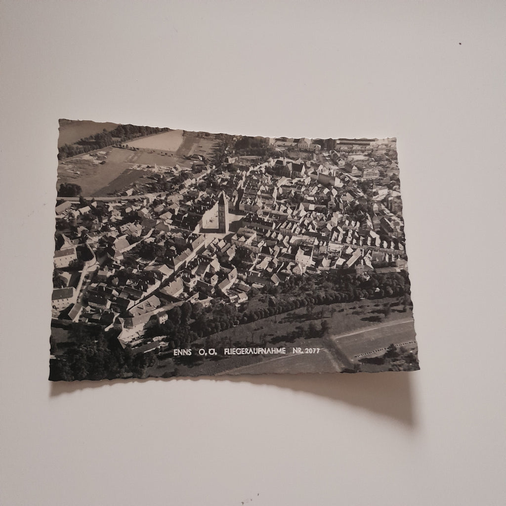 AK Enns. Fliegeraufnahme. Ungelaufen. Großformat. Verlag: Nakel. Nummeriert: 2077. Zustand: gut.