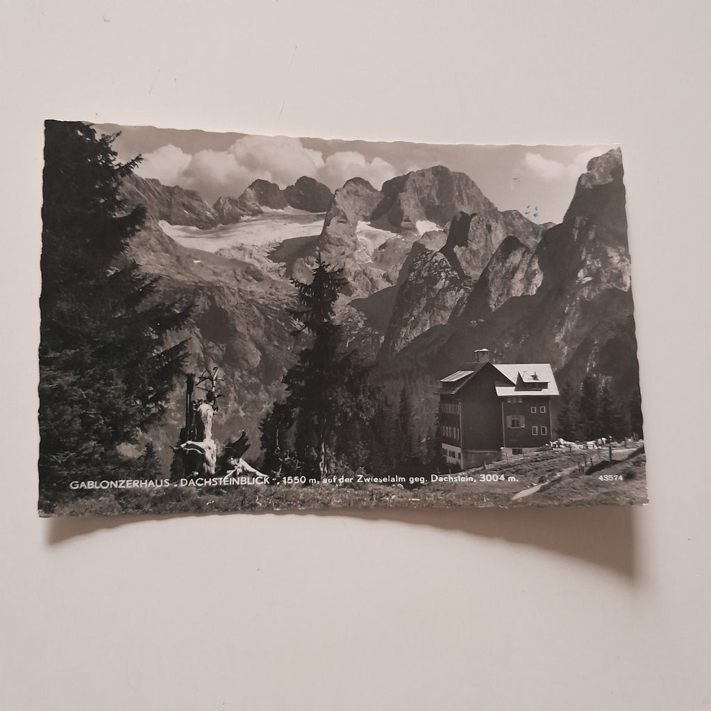 AK Gablonzerhaus Dachsteinblick auf der Zwieselalm. Gelaufen. Kleinformat. Verlag: Ledermann. Nummeriert: 43574. Zustand: gut.