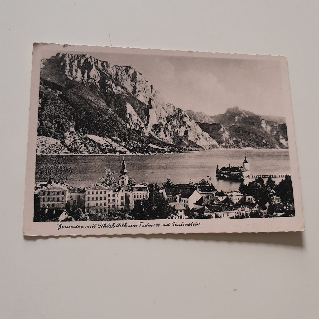 AK Gmunden mit Schloß Orth am Traunsee. Gelaufen. Großformat. Verlag: KTV. Nummeriert: 2248. Zustand: rechtes unteres Eck geknickt.