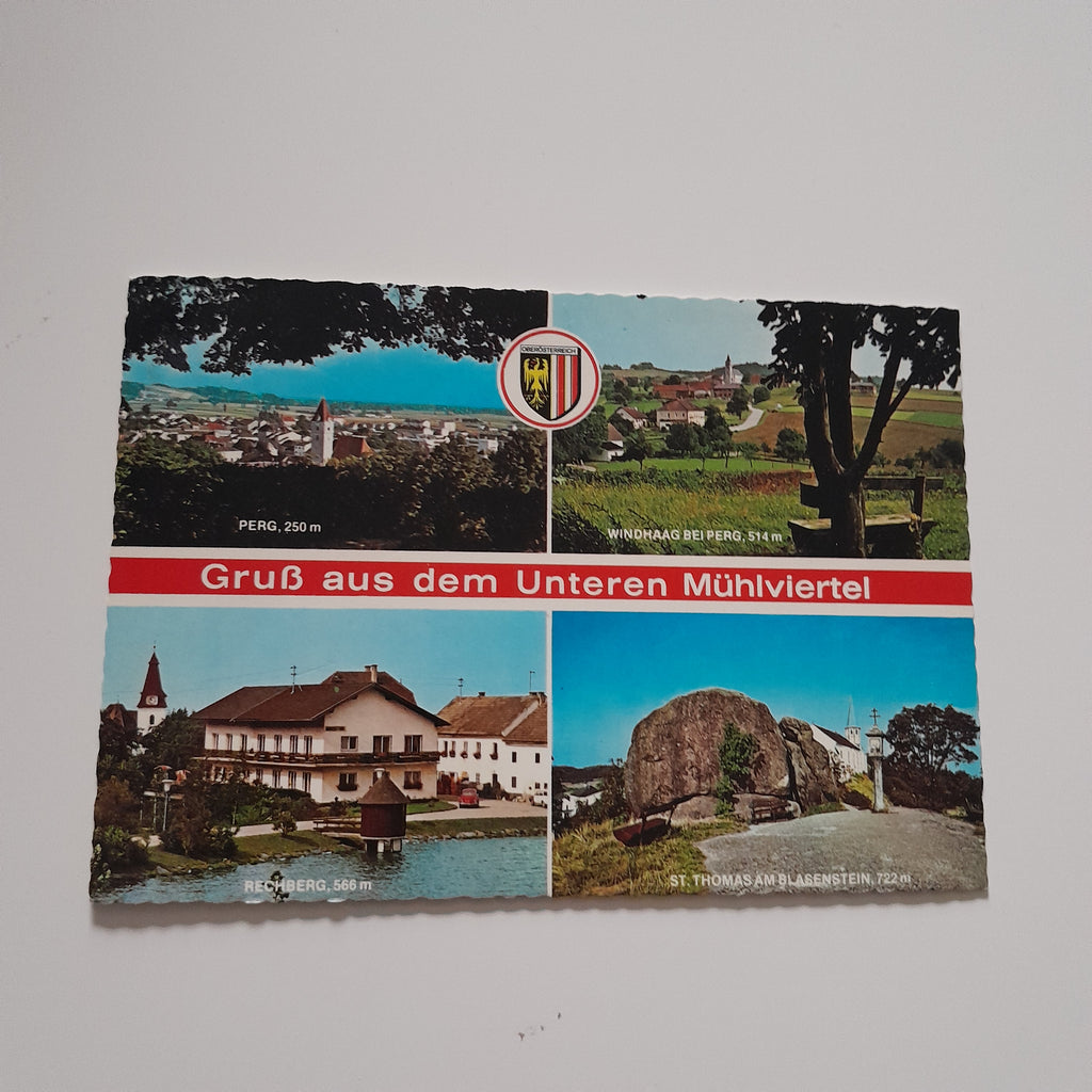 AK Gruß aus dem Unteren Mühlviertel. Gelaufen. Großformat. Verlag: Alpine Luftbild. Nummeriert: 1082. Zustand: Knick in rechter oberer Hälfte.