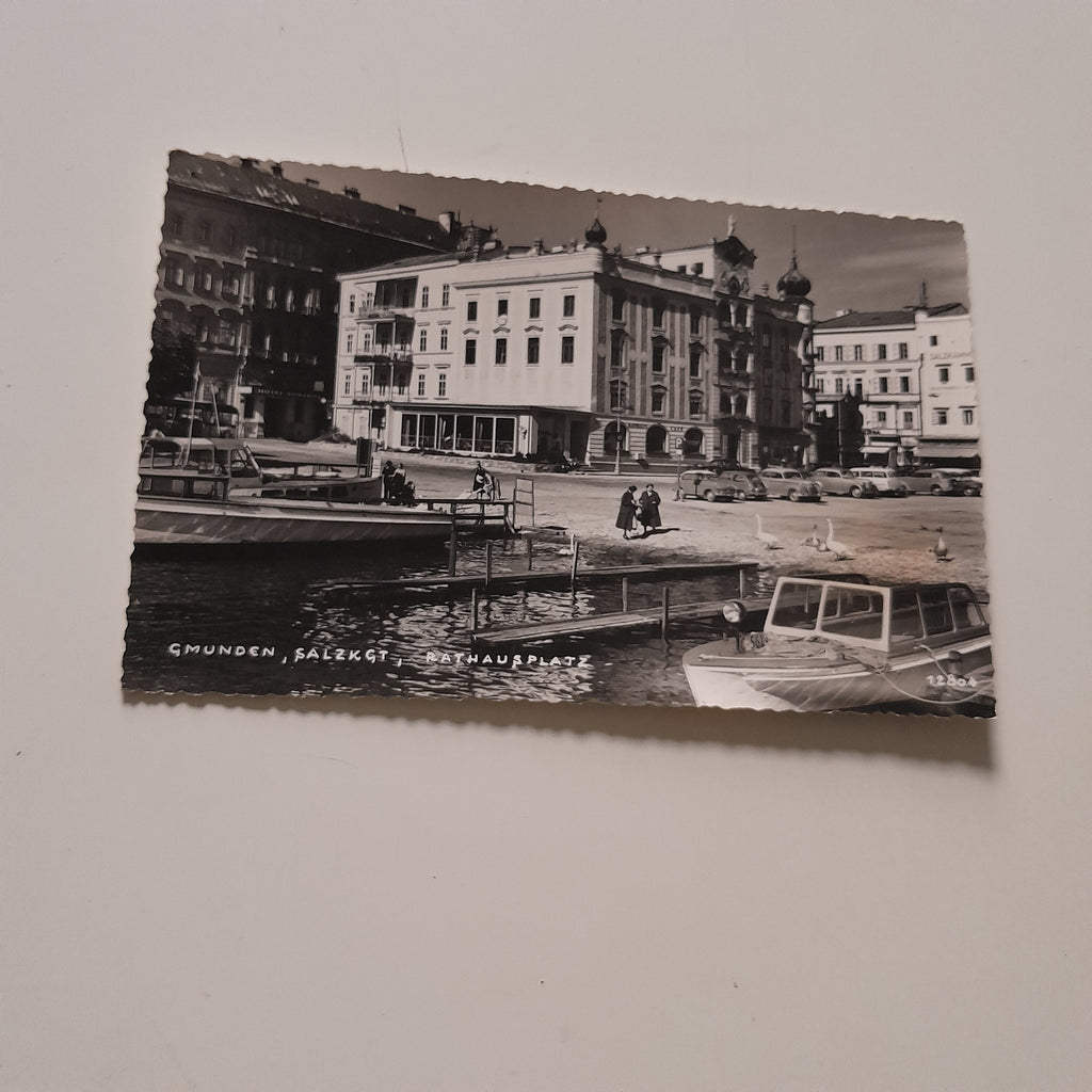 AK Gmunden. Rathausplatz. Gelaufen. Kleinformat. Zustand: stärker bestoßen.