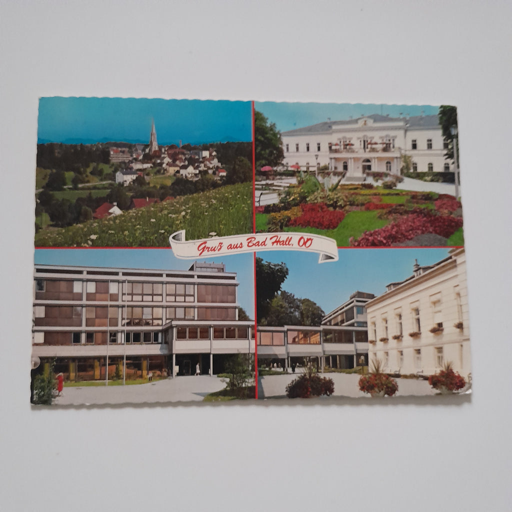 AK Gruß aus Bad Hall. Gelaufen. Großformat. Verlag: PAG. Nummeriert: 82767. Zustand: rechtes unteres Eck geknickt.