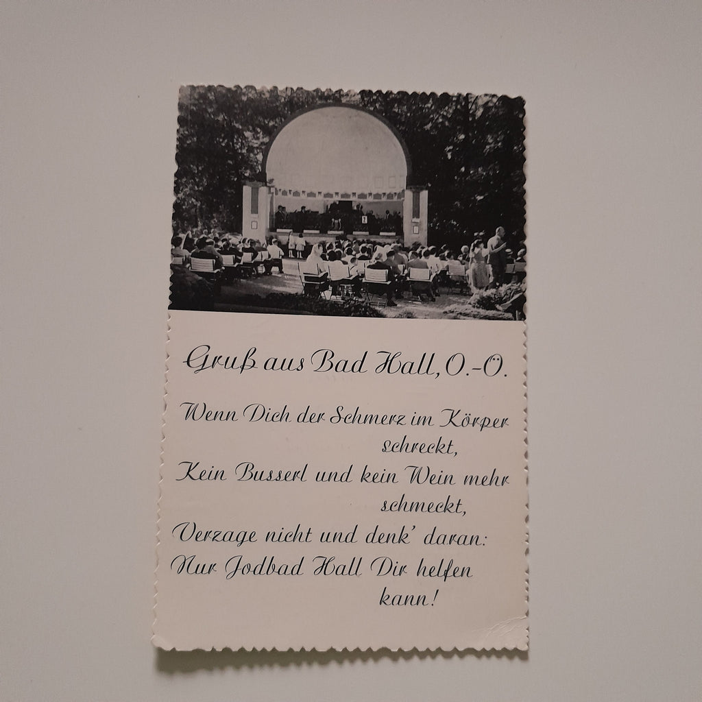 AK Gruß aus Bad Hall. Gelaufen. Kleinformat. Verlag: Terraphot. Nummeriert: 769. Zustand: gut, rechtes unteres Eck geknickt.