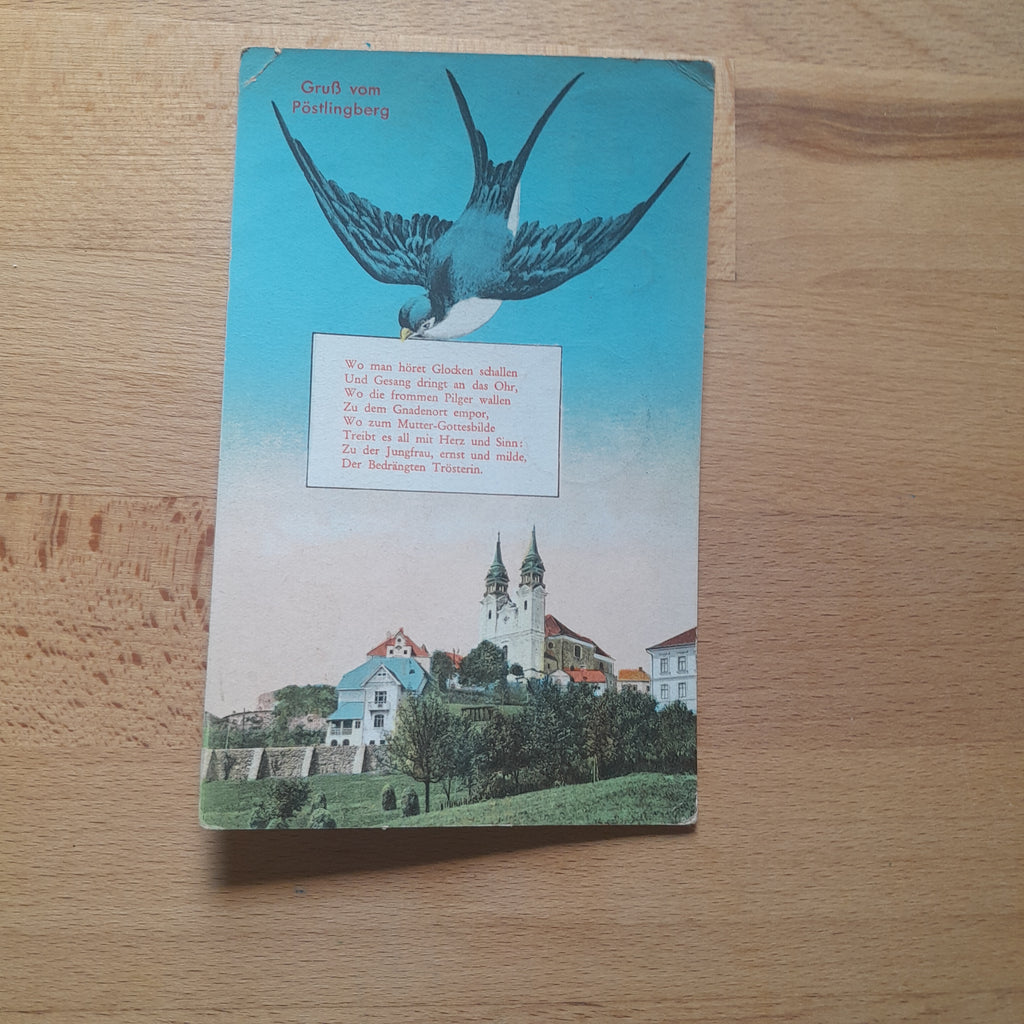 AK Gruß aus Pöstlingberg bei Linz. Gelaufen, aber Briefmarke wurde entfernt. Kleinformat. Verlag: Casagrande. Zustand: obere Ecken geknickt.