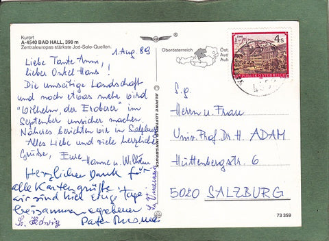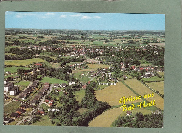 AK Grüße aus Bad Hall. Gelaufen 1989. Großformat. Verlag: Alpine Luftbild Innsbruck. Nummeriert: 73359. Zustand: gut, rechtes unteres Eck angeknickt.