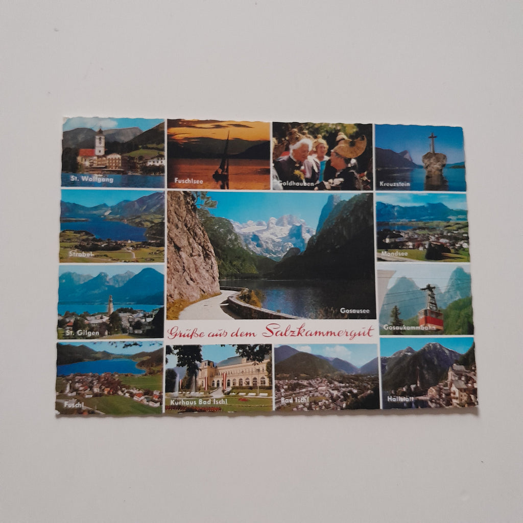 AK Grüße aus dem Salzkammergut. Ungelaufen. Großformat. Verlag: Montana. Nummeriert: 3. Zustand: gut, linkes oberes Eck geknickt.