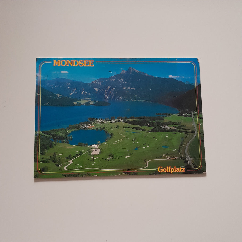 AK Mondsee. Gelaufen. Großformat. Verlag: Alpine Luftbild. Nummeriert: 87104. Zustand: stärker bestoßen.