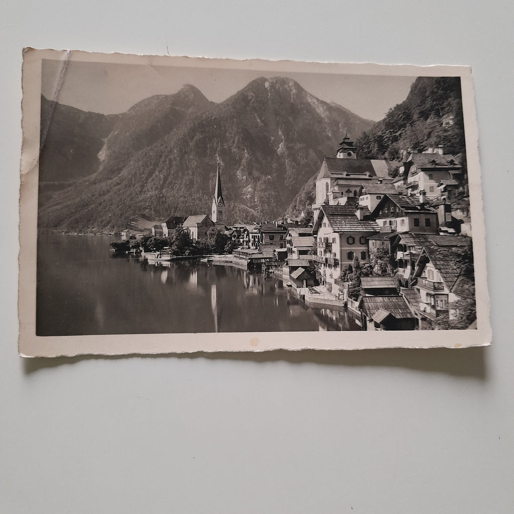 AK Hallstatt mit Hirlatz. Gelaufen. Kleinformat. Verlag: Bährendt. Zustand: linkes oberes Eck geknickt.