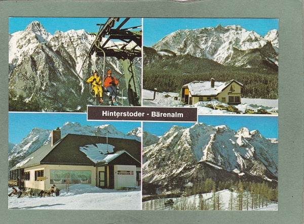 AK Hinterstoder - Bärenalm. Gelaufen 1981. Großformat. Verlag: Hochreiter. Nummeriert: FK 144. Zustand: rechtes oberes Eck doppelt geknickt, Knicke am linken Rand unten.