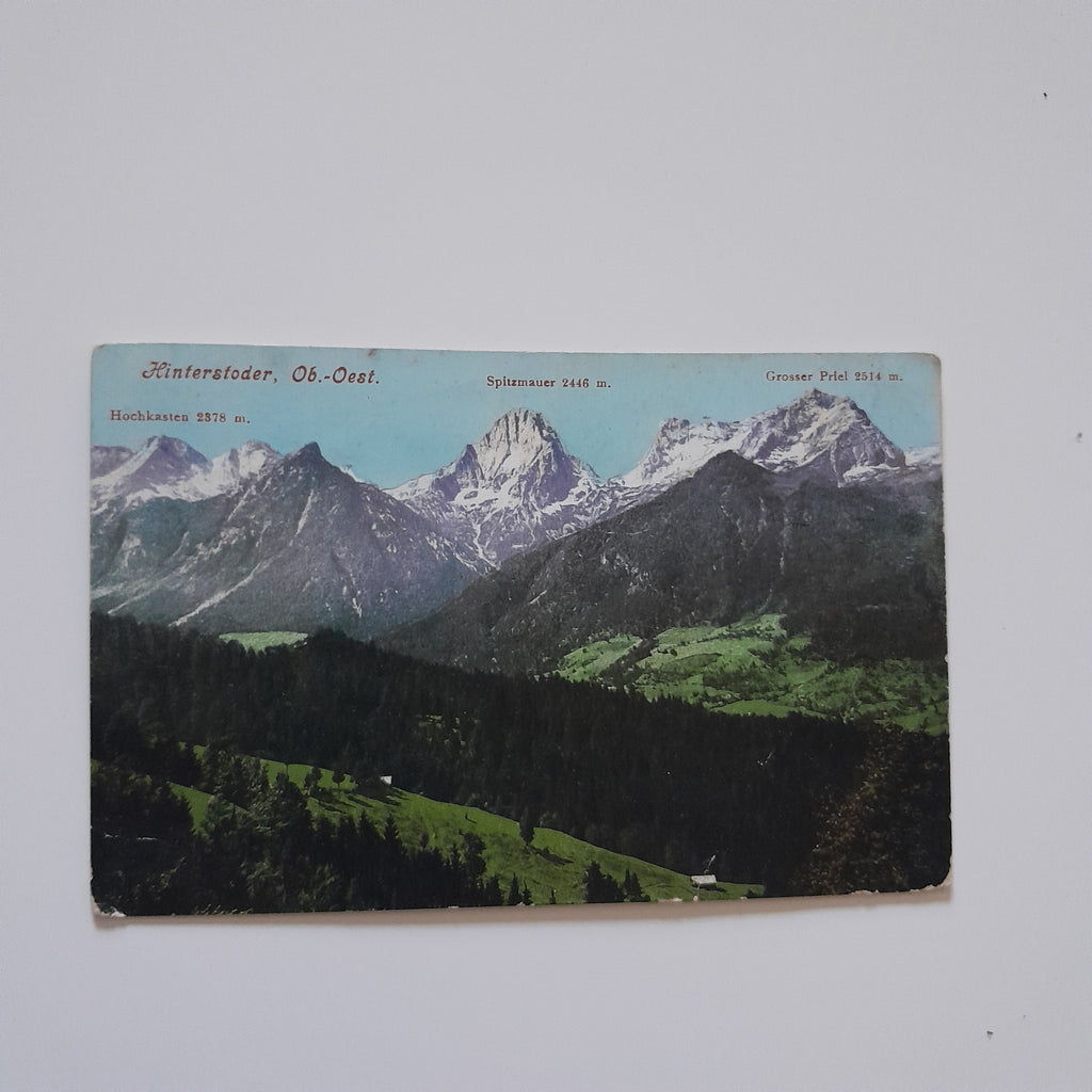 AK Hinterstoder. (1906) Gelaufen, aber Briefmarke wurde entfernt. Kleinformat. Verlag: Brandt. Nummeriert: 805. Zustand: stärker bestoßen.