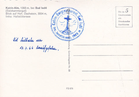 AK Katrin-Alm bei Bad Ischl. Blick auf Hoh. Dachstein. Hallstättersee. Ungelaufen. Großformat. Verlag: Cosy. Nummeriert: FS 679. Zustand: gut.