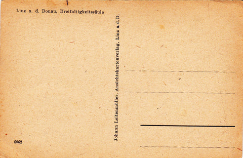 AK Linz a.d. Donau, Dreifaltigkeitssäule. Ungelaufen. Kleinformat. Verlag: Leitenmüller. Nummeriert: 6062. Zustand: Ecken geknickt.