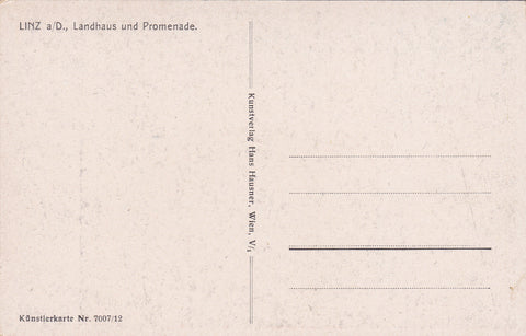AK Linz a/D. Landhaus und Promenade. Ungelaufen. Kleinformat. Verlag: Hausner. Nummeriert: 7007/12. Zustand: gut, rechtes oberes Eck geknickt.