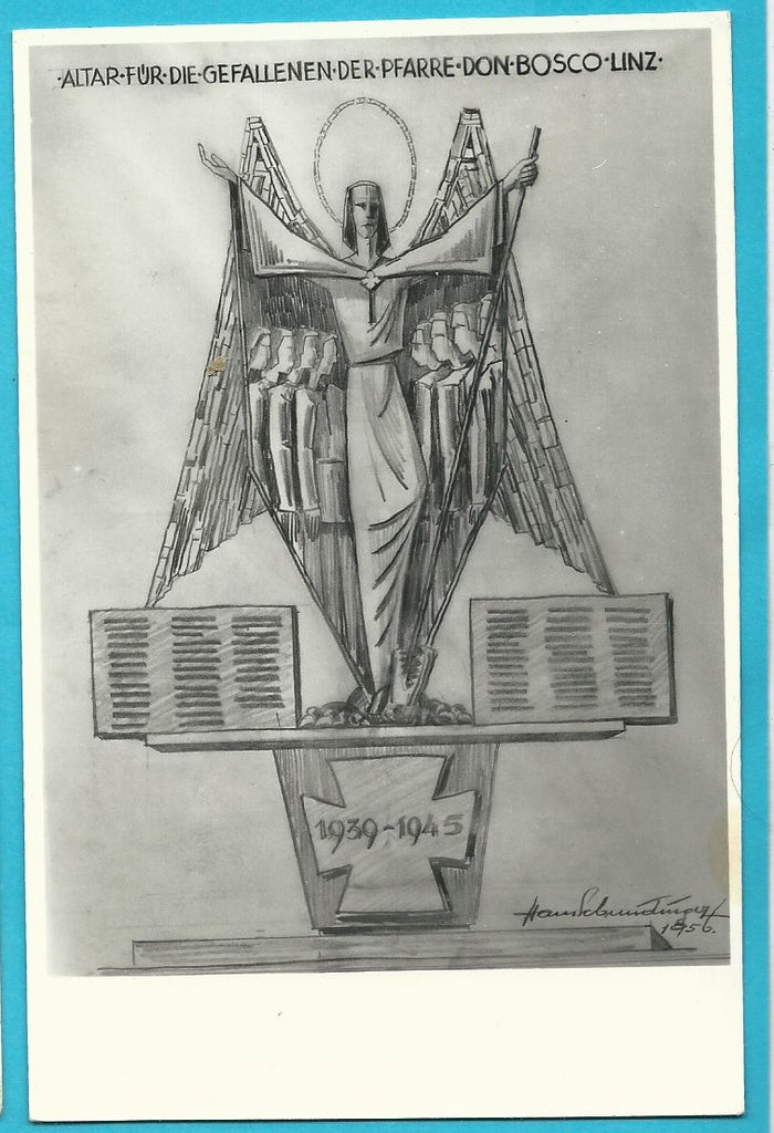 AK Linz. Altar für die Gefallenen der Pfarre Don Bosco. Ungelaufen. Kleinformat. Zustand: gut, leicht bestoßen.