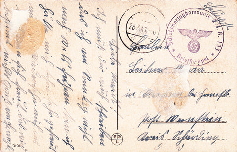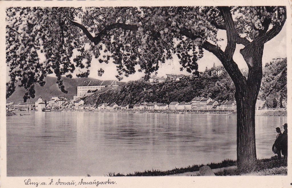 AK Linz an der Donau. Donaupartie. Gelaufen als Feldpost 1941. Kleinformat. Verlag: EGL. Nummeriert: 0191. Zustand: linkes oberes Eck geknickt, Kleberückstände auf Rückseite.