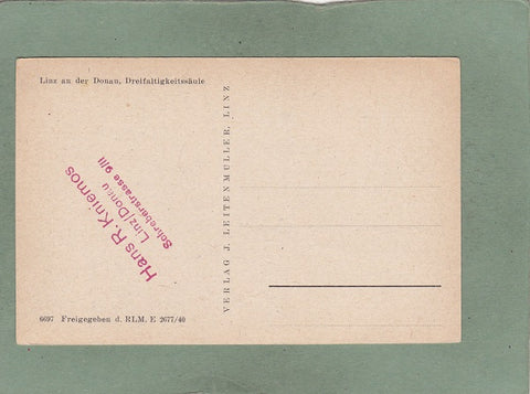 AK Linz an der Donau, Dreifaltigkeitssäule. Ungelaufen. Kleinformat. Verlag: Leitenmüller. Nummeriert: 6697. Zustand: rechtes unteres Eck angeknickt, sonst leichte Läsuren, vergilbt.