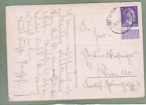 AK Linz/Donau. Gelaufen 1943. Großformat. Verlag: Leitenmüller. Nummeriert: 4. Zustand: Ecken geknickt, am oberen Rand bestoßen mit kleinem Einriss.