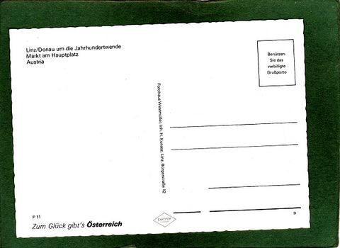 AK Linz/Donau um die Jahrhundertwende. Markt am Hauptplatz. Ungelaufen. Großformat. Verlag: Westmüller. Nummeriert: P 11. Zustand: gut, rechte Ecken wenig angeknickt.