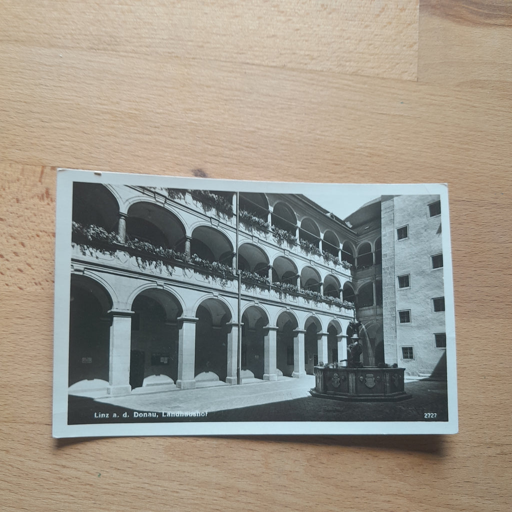 AK Linz. Landhaushof. Gelaufen. Kleinformat. Verlag: Leitenmüller. Nummeriert: 2727. Zustand: stärker bestoßen.